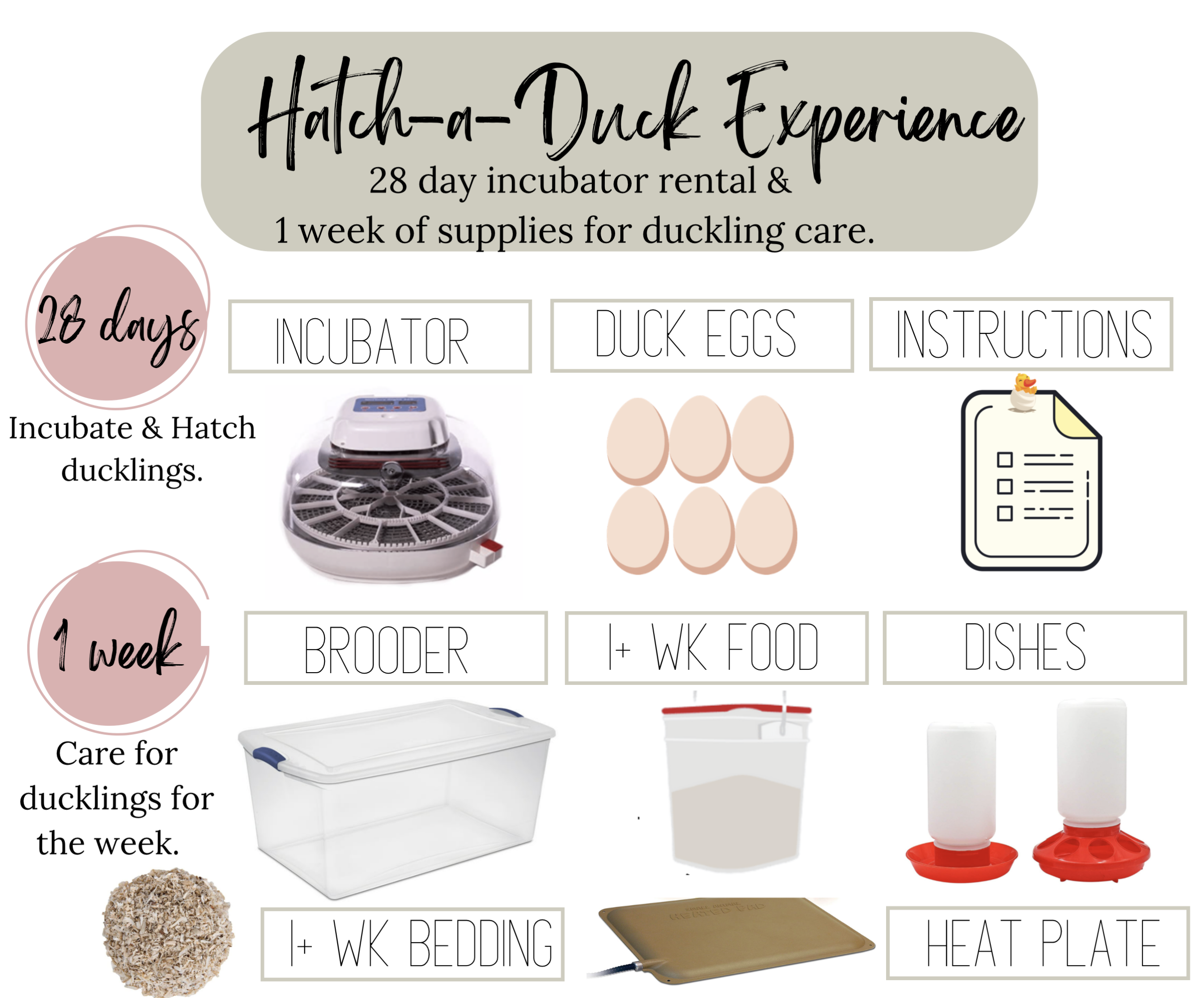 The Hatch-a-Duck learning experience makes it easy for families to incubate, hatch and care for baby ducklings. Our experience is specially crafted to ensure you have all the supplies and support needed to provide a memorable and successful learning experience. Once ducklings are returned to the farm they live out their lives in open pastures to lay eggs for our community or protect flocks on farms!